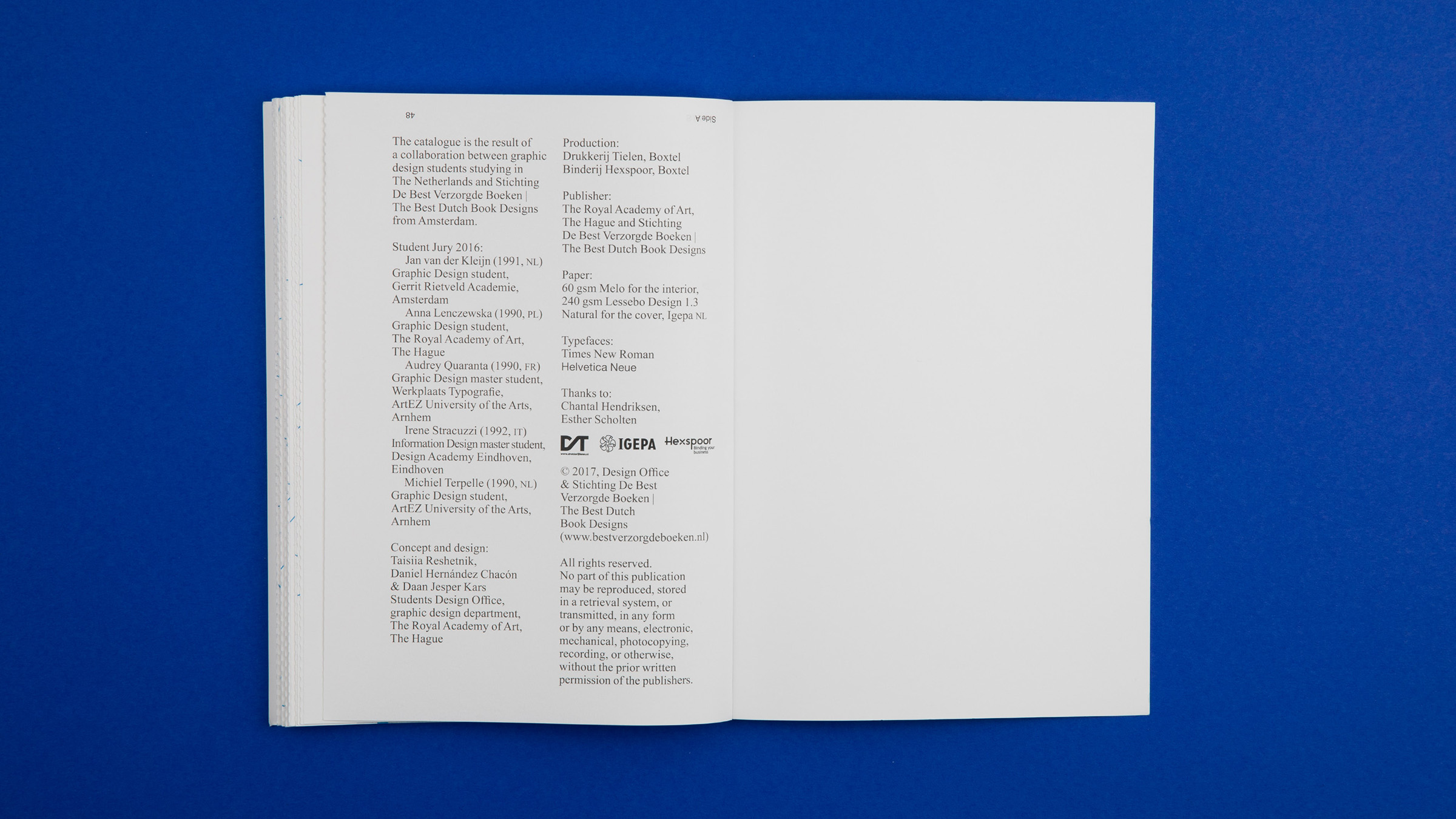 Looking at the selected books, a certain pattern appears: a book is not just a source of information, but an object. With it’s image-based editorial approach, tactility, choice of paper, typography and final presentation, the selection of 2016 is telling a lot about how our perception of printed matter is being influenced by the electronic media. The catalogue was displayed at the Stedelijk Museum Amsterdam amongst other books as part of the Best Dutch Book Designs 2016.