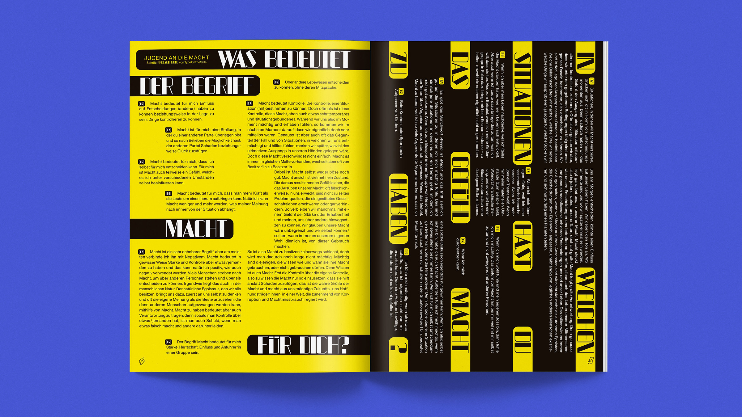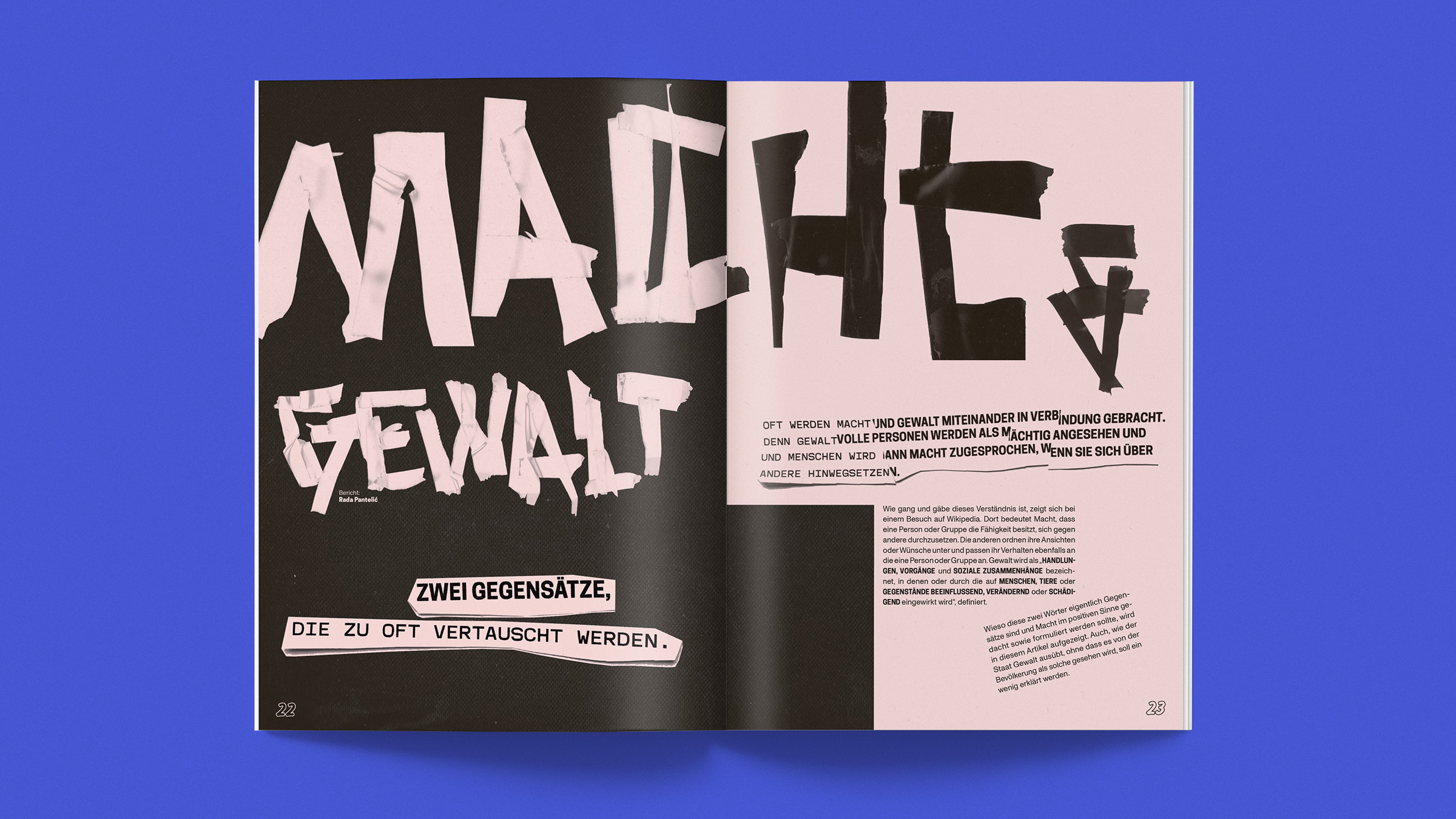 How can digital worlds be made physically palpable? The YOUKI Festival 2020 had to take place solely online due to the pandemic. It was essential to translate this digital space in the annual print edition and make it physically palpable. An immersive large scale zone was created – an analogue correspondent to the online festival, in which there are possibilities to get lost during reading and thus find new paths and spaces.
